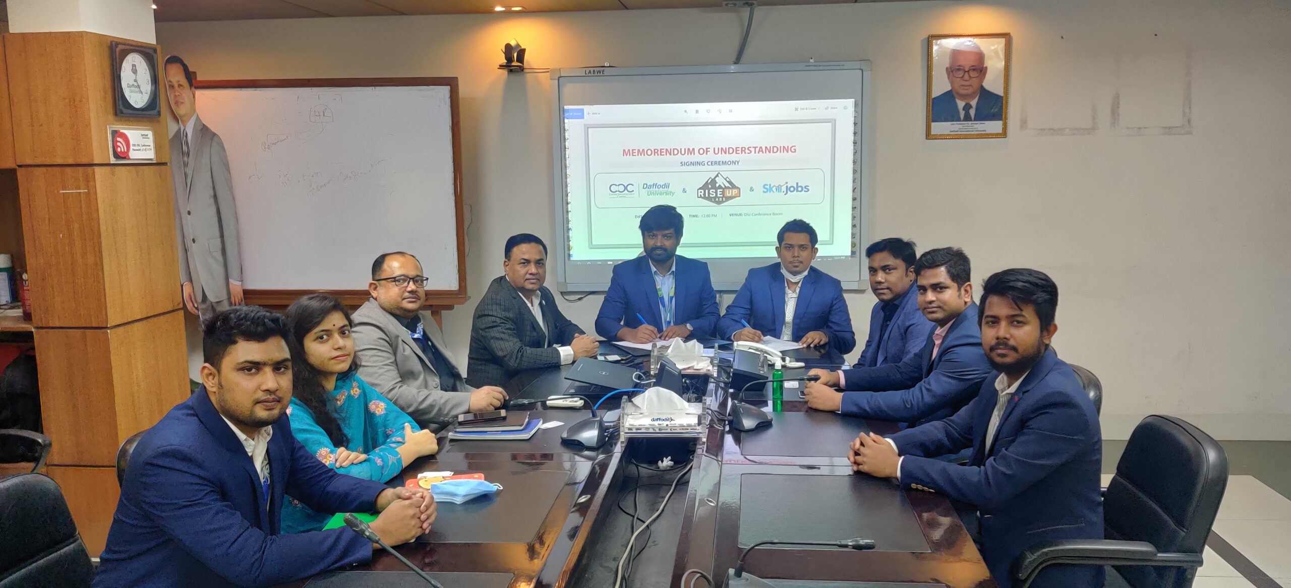 The signing ceremony was attended by Mr. Md. Shumsud Doha, Assistant Director, CDC, DIU, and Mr. Moshiur Rahman (Management Officer) of Riseup Labs and other high officials of the Career Development Center (CDC) of Daffodil International University (DIU).